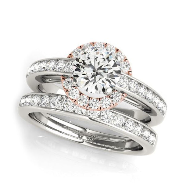 Halo Diamond Engagement Ring Mounting in White and Rose Gold